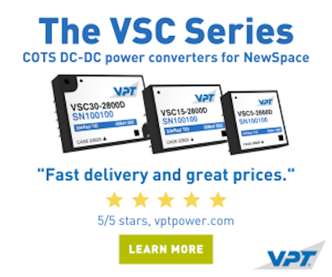 | | Sponsored | | The VSC Series of commercial-off-the-shelf (COTS) DC-DC converters have been designed and tested for the NewSpace market. This series is ideal for use in commercial rad tolerant satellite applications and NASA Class D missions where the balance of cost and guaranteed performance is critical. |