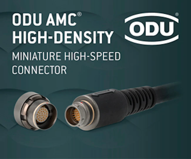 ODU AMC® High-Density connectors offer up to 27 contacts from 7 mm diameter, with IP6K8 waterproofing, operating temperatures from -51°C to +125°C, over 5,000 mating cycles and 360 shielding, cable assembly integrated solutions. Designed for next-gen military systems, it suits applications like helmet cameras, radios, headsets, GPS, batteries, displays, and vehicles.