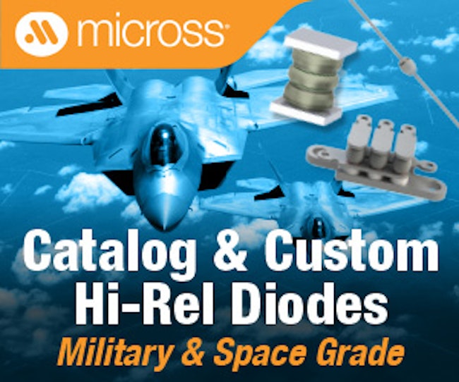 | | Sponsored | | Micross diodes are hermetic, non-cavity, double-plug construction with category I metallurgical bonds, available in standard axial & surface-mount packages, or custom as required. Listed on the DLA Land & Maritime QPL list and suitable for operation from -65°C to 175°C, Micross Hi-Rel Diodes are qualified to JAN, JANTX, JANTXV, & JANS (Space) quality levels. Meet us at Space Tech EU, Booth C40. |