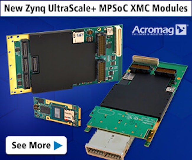 | | Sponsored | | Acromag’s XMC and AcroPack mini PCIe modules use AMD Zynq UltraScale+ MPSoC devices with integrated multi-core ARM CPUs and FPGA logic. Dedicated processing blocks are also available for graphics and video encoding. They are an ideal solution for real-time control, sensor fusion, compute-intensive data processing, and many other I/O functions. |